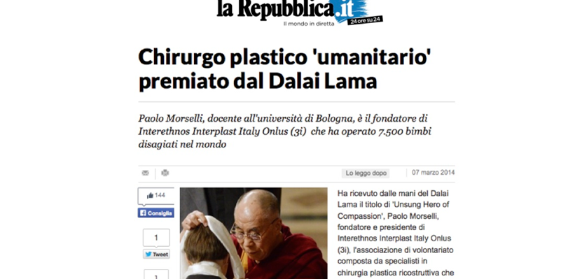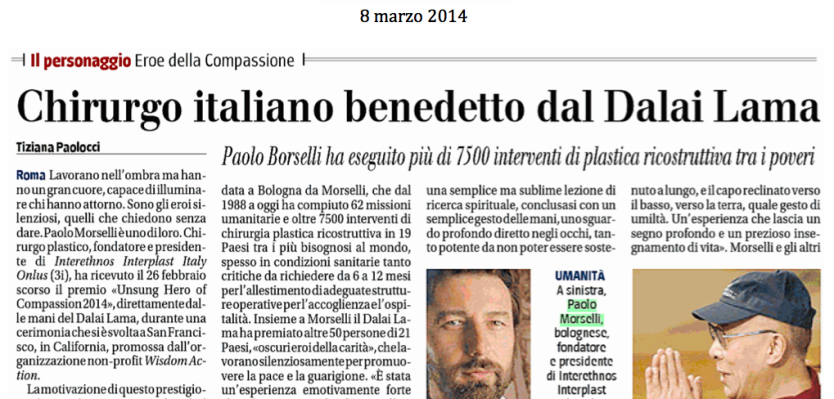 San Francisco 22-23 Febbraio 2014 In occasione dell’evento ‘Unsung Heroes of Compassion 2014‘ 51 persone provenienti da 21 Paesi sono state premiate per il proprio lavoro, svolto per alleviare le sofferenze delle popolazioni meno fortunate, per portare cure di salvezza alle regioni colpite dalla guerra e alle persone affette da gravi patologie.